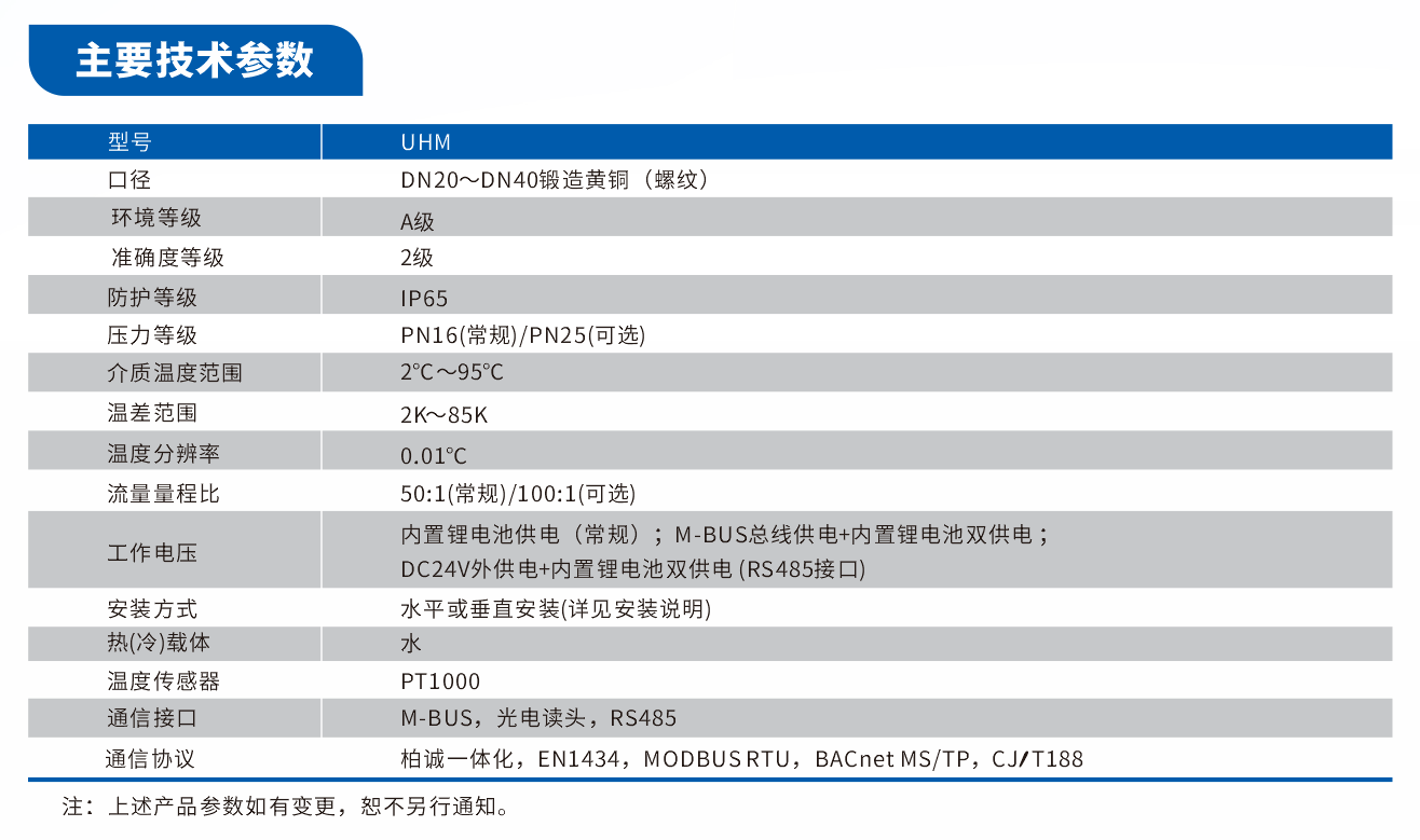 230UHM系列超聲波熱量表口徑范圍:DN20-DN40