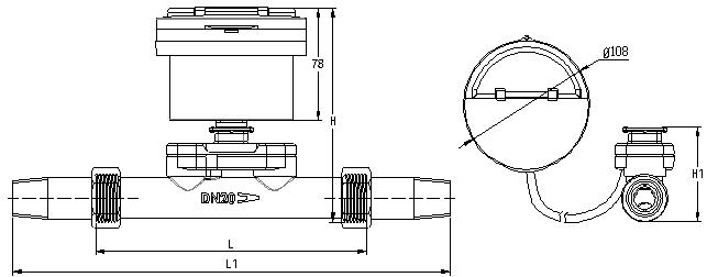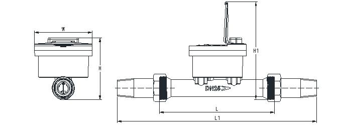 T90熱水表DN15~DN40外形尺寸