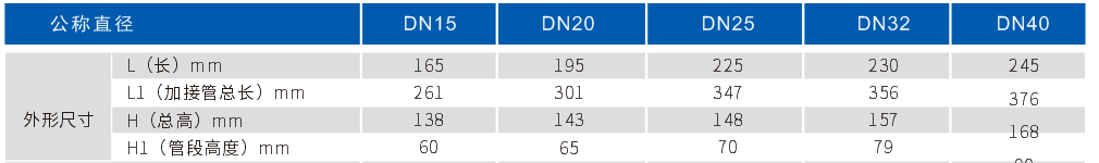 T50冷水表DN15~DN40外形尺寸