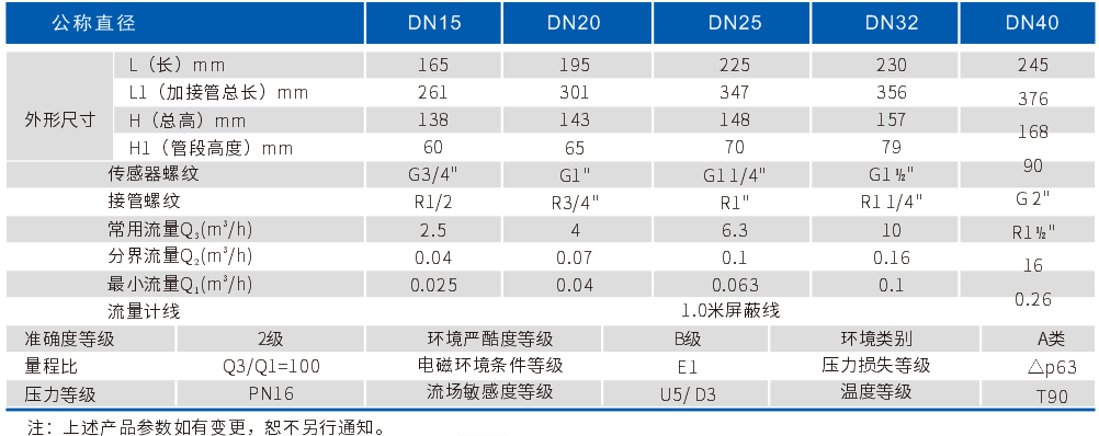 T90熱水表DN15~DN40技術(shù)參數(shù)