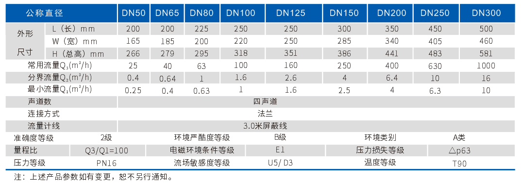 T90熱水表DN50~DN300技術(shù)參數(shù)