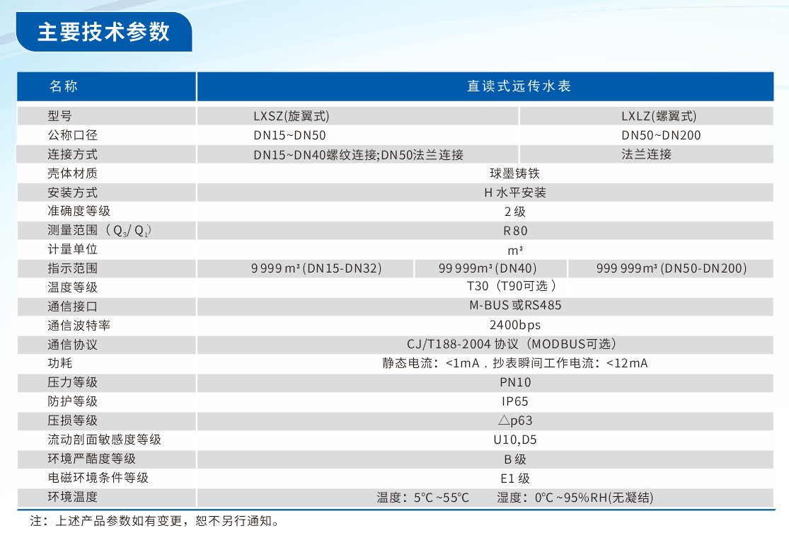 LXSZ型直讀式遠(yuǎn)傳水表(以下簡稱直讀式遠(yuǎn)傳水表)是針對日常用水的一款便于遠(yuǎn)程抄表及控制的直讀式遠(yuǎn)傳水表,它采用M-BUS∕RS485 總線方式通訊,實現(xiàn)水表使用水量的遠(yuǎn)程直讀,有效地避免了管理部門上門抄表,方便管理部門對直讀式遠(yuǎn)傳水表的用水情況進行監(jiān)控,使得遠(yuǎn)程抄表變得更便捷、可靠,在節(jié)約人力、物力和財力的同時,有效地提高了生產(chǎn)力,本直讀式遠(yuǎn)傳水表,符合GB/T778-2007《封閉滿管道中水流量的測量飲用冷水水表和熱水水表》和CJ/T224-2012《電子遠(yuǎn)傳水表》的技術(shù)要求。通信規(guī)約遵循CJ/T188-2004《戶用計量儀表數(shù)據(jù)傳輸技術(shù)條件》的要求,也可根據(jù)客戶需求定制通信協(xié)議。