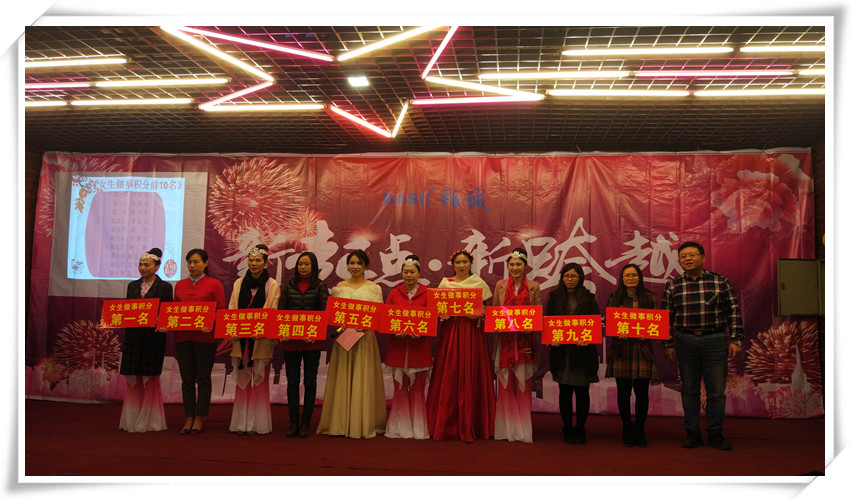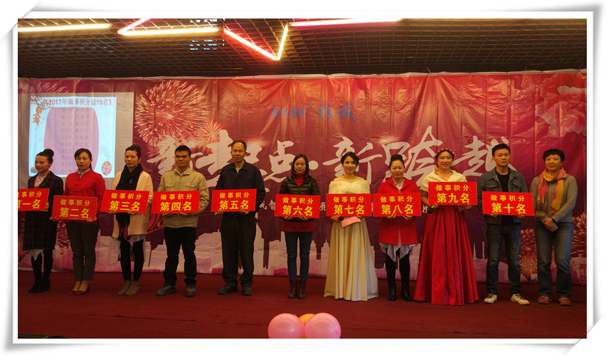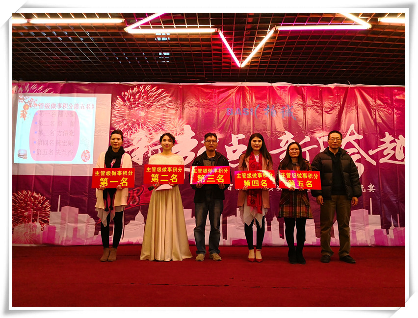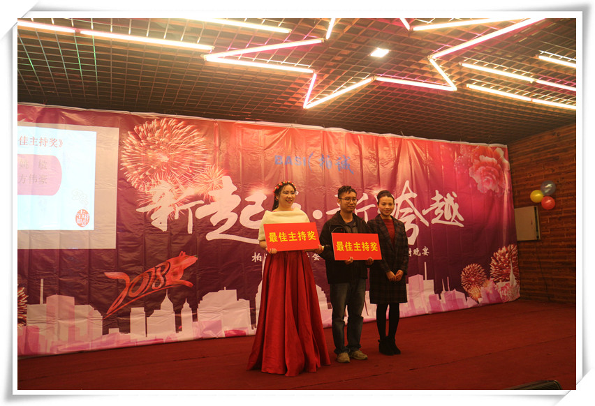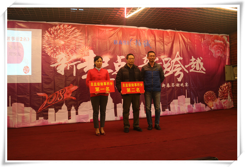 緊接住請出了年會的總策劃常務副總經(jīng)理黃苑平女士發(fā)表致辭。黃總表示在公司有7個年頭,已經(jīng)舉辦了7個年會和32期快樂會議,感覺就像是看著孩子從出生到7歲的成長,有歡樂與憂愁,但我們都能以積極的心態(tài)去面對,今天要頒發(fā)200多個獎項,其中有32個是現(xiàn)金獎勵,還有100多個抽獎,合計300多個,希望今晚大家一起共享這美好的時刻,共度這一歡樂的夜晚,最后引用習大大2018和2017名言,幸福都是奮斗出來的,2018擼起袖子加油干,祝大家新年快樂!狗年吉祥!身體健康!萬事如意!
