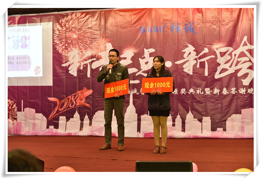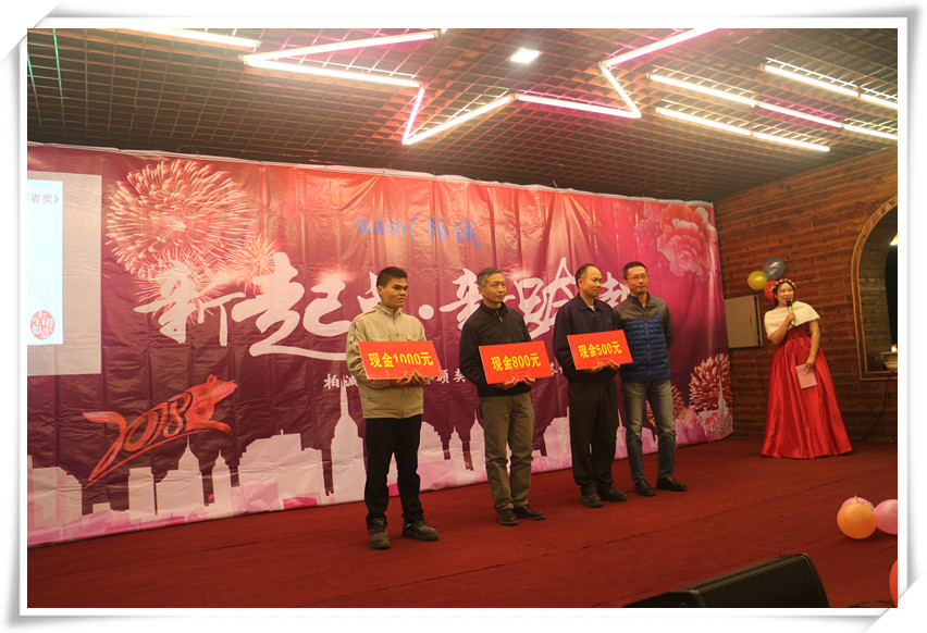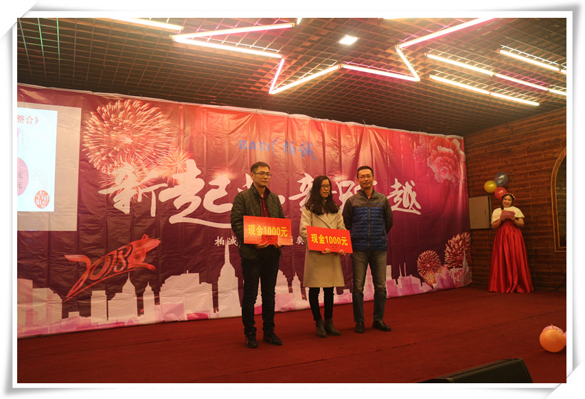 待大家酒足飯飽之后,緊接著是柏誠頒獎環(huán)節(jié)。柏誠公司為2017年優(yōu)秀積極的員工們送上別出心裁的獎品和滿滿的祝福,感謝他們一路以來為柏誠發(fā)展所做出的貢獻,并希望他們在未來的發(fā)展進程中再接再厲,勇創(chuàng)佳績!