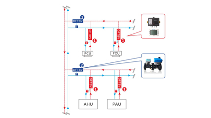 傳統(tǒng)“靜態(tài)平衡閥+電動(dòng)二通閥”平衡調(diào)節(jié)方式:圖一為靜態(tài)平衡閥安裝在風(fēng)機(jī)盤管各層水平回水支管上,圖二為靜態(tài)平衡閥安裝在風(fēng)機(jī)盤管各層水平回水支管和末端回水端上。通過安裝靜態(tài)水力平衡閥,并且在初調(diào)試時(shí)按照一定的步驟進(jìn)行調(diào)節(jié),可以使在系統(tǒng)調(diào)試合格后各層水平支管或者各個(gè)風(fēng)機(jī)盤管的流量同時(shí)達(dá)到設(shè)計(jì)流量,系統(tǒng)部分或者全部消除了靜態(tài)水力失調(diào).....