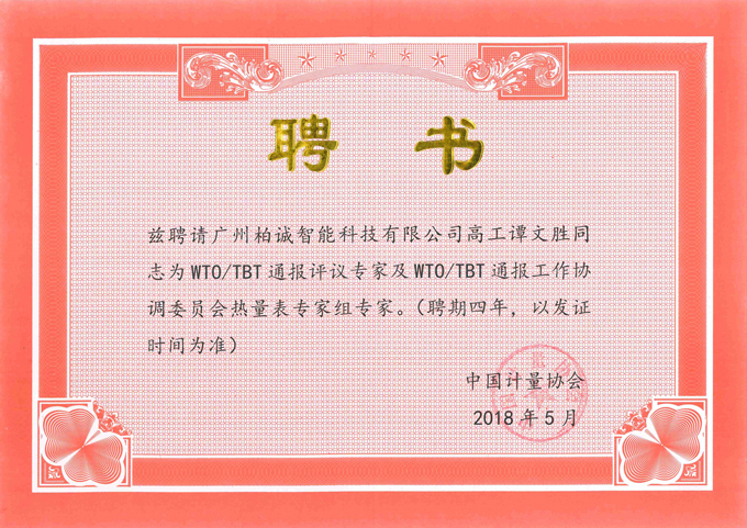 會(huì)上,譚文勝總經(jīng)理被授予“全國計(jì)量行業(yè)WTO/TBT通報(bào)評(píng)議專家及WTO/TBT通報(bào)工作協(xié)調(diào)委員會(huì)熱量表專家組專家”證書。這也是繼2014年后又一次獲此殊榮。