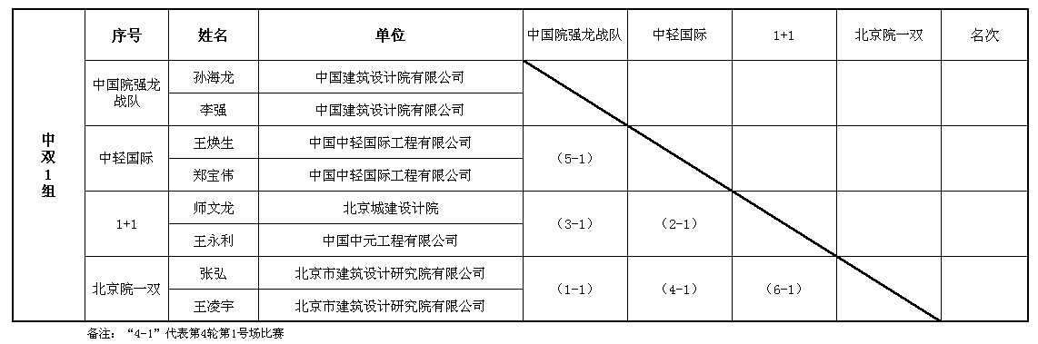 中年男雙第一階段賽程表(1號場)