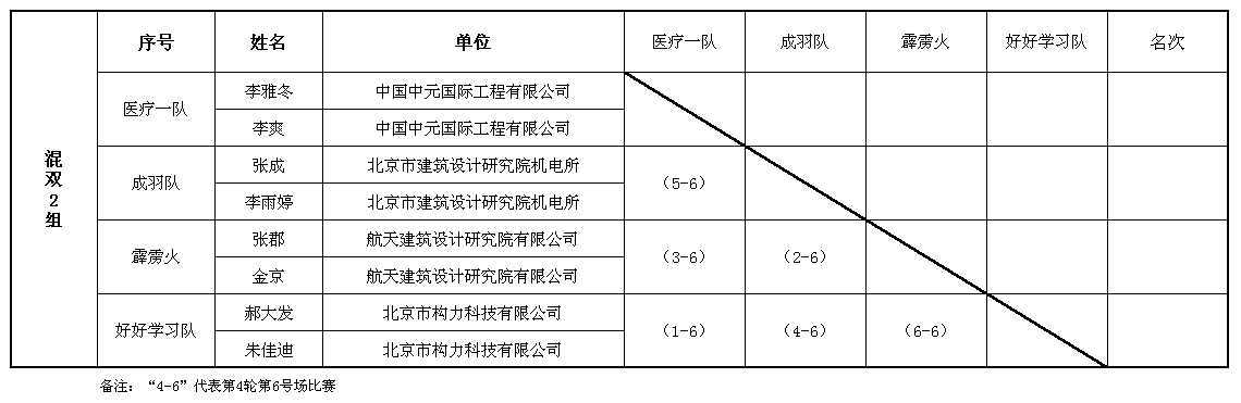 混合雙打第一階段賽程表(6號場)
