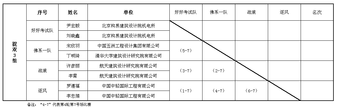 混合雙打第一階段賽程表(7號場)