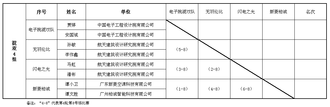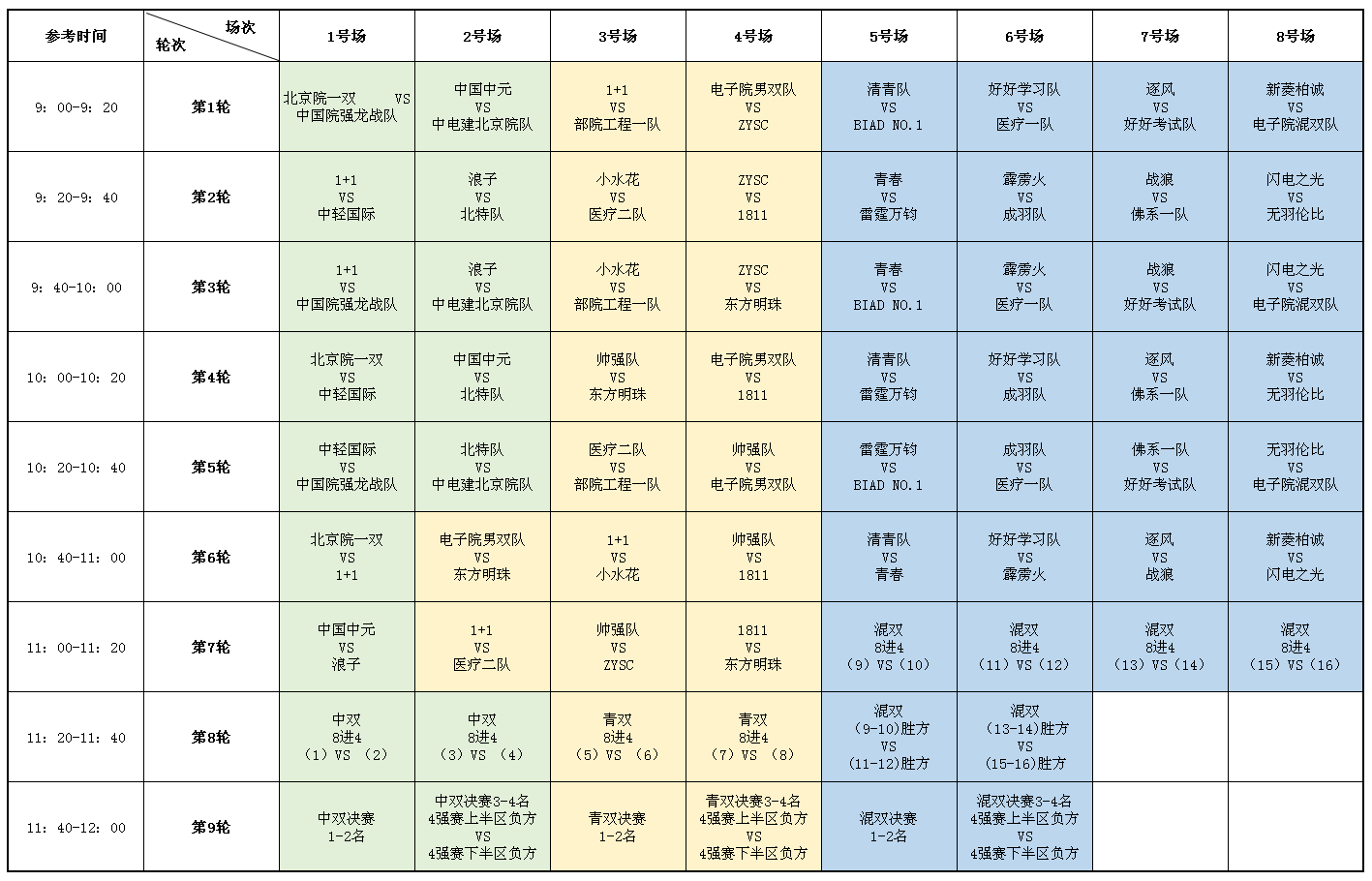 混合雙打第一階段賽程表(8號場)