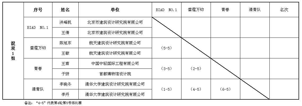 混合雙打第一階段賽程表(5號場)