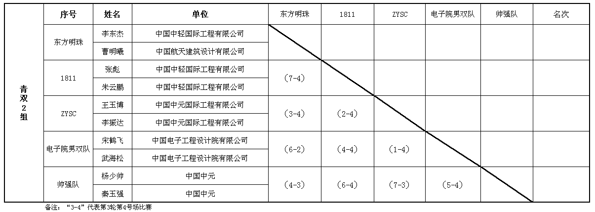 青年男雙第二階段賽程表(3-4號場)