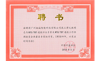 廣州柏誠譚文勝總經(jīng)理受聘WTO/TBT通報評議專家及工作協(xié)調(diào)委員會熱量表組專家